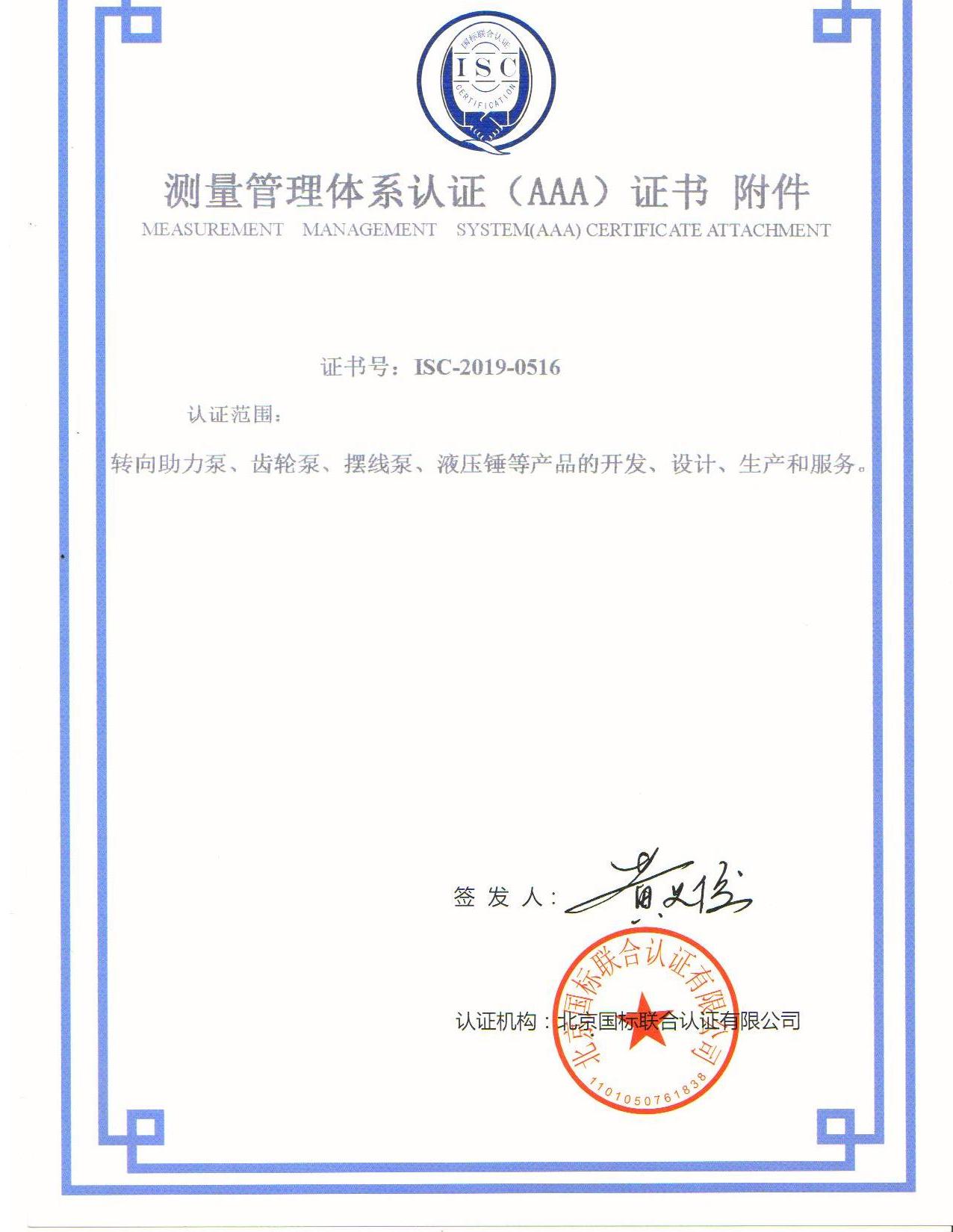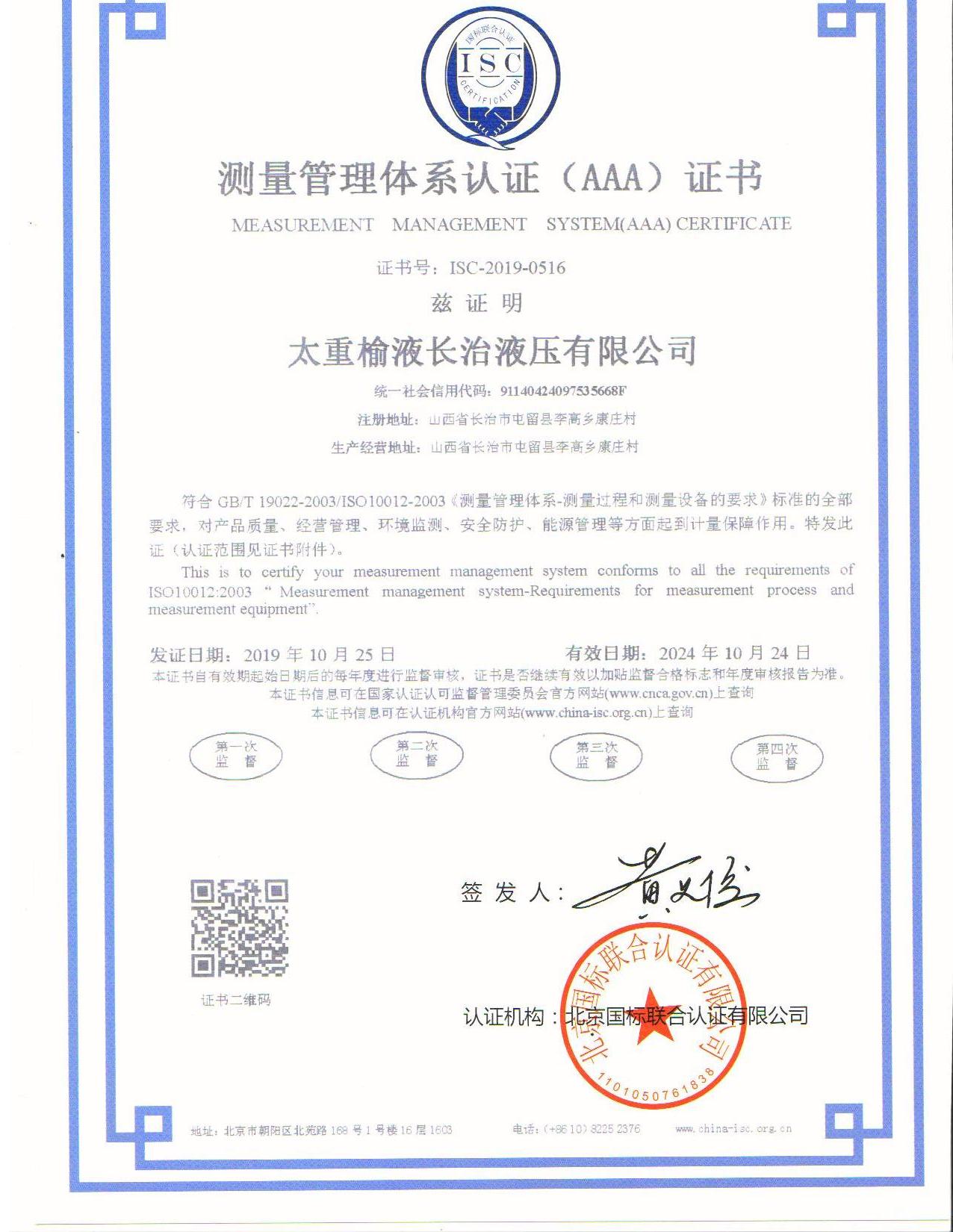 公司以高質(zhì)量發(fā)展為目標,通過了ISO9001:2015質(zhì)量管理體系認證、IATF16949:2016質(zhì)量管理體系認證、ISO14001:2015環(huán)境管理體系認證及ISO10012-2003測量管理體系認證,確保設(shè)計過程、生產(chǎn)過程、采購過程、測量過程及測量設(shè)備等能夠滿足要求,生產(chǎn)出優(yōu)質(zhì)產(chǎn)品,滿足用戶的需求,并獲得主機用戶認可。