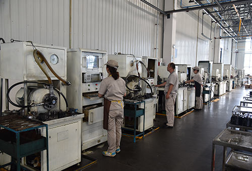 葉片泵出廠程控試驗臺12臺,試驗流程自動化控制,功率有15KW、22KW、30KW,覆蓋所有葉片泵品種,1500臺/天試驗能力。